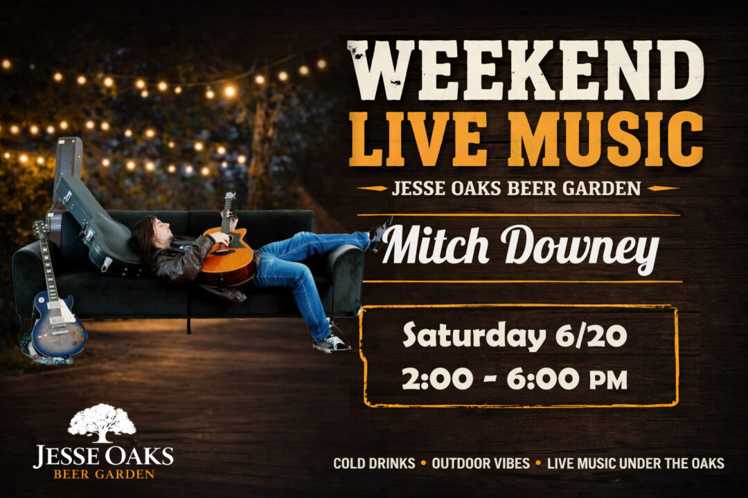 🎶 Live Music at Jesse Oaks with Mitch Downey! 🎶 Join us for an afternoon of live music with Mitch Downey in the Beer Garden! Mitch is a guitarist/bassist instructor based in Kenosha, WI, a musician with Spirit Shakers, and brings a blend of psychedelic rock and singer-songwriter style to the stage. Come out for great tunes, cold drinks, and laid-back Beer Garden vibes. Grab some breakfast, sip on an HD Bloody Mary, and enjoy the day with us. Dogs are welcome in the Beer Garden too. 🐾🍻